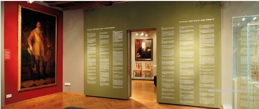Die monumentale Stadtchronik in der stadtgeschichtlichen Abteilung informiert über Augsburgs wechselvolle Geschichte. Durch markierten Jahreszahlen sind die Ausstellungstücke mit der Chronik vernetzt.